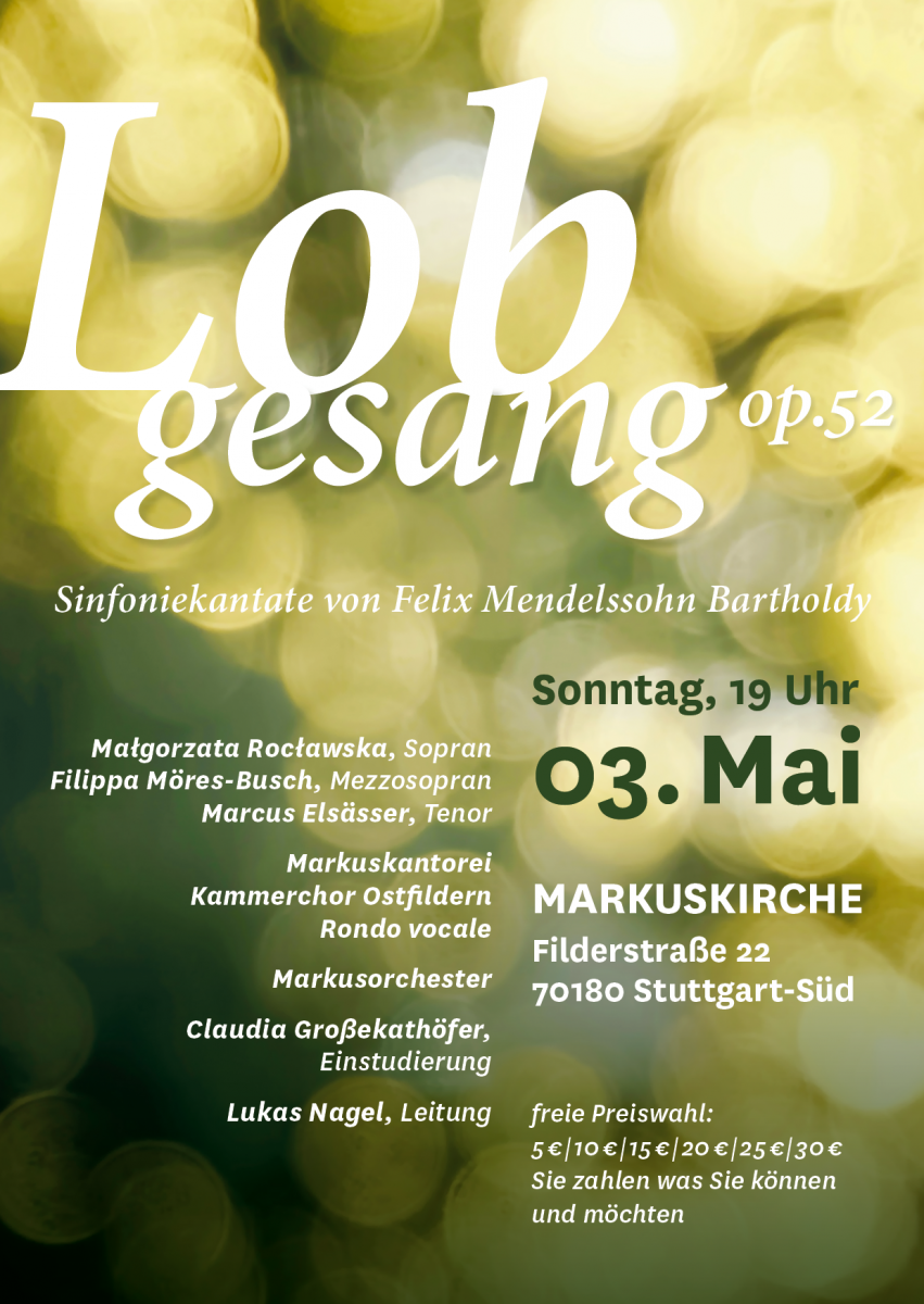 Vor dem Konzert ist nach dem Konzert. Das Rondo vocale arbeitet sehr gerne mit dem Markuskantor Lukas Nagel und der Markuskantorei zusammen. Einige Sängerinnen und Sänger des Rondos werden bei Konzert am 3. Mai um 19 Uhr in der Markuskirche dabei sein, wenn der Lobgesang (op. 52) von Mendelssohn Bartholdy erklingen wird. Herzliche Einladung!